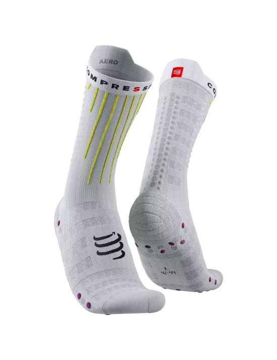 Réunissant les technologies de nos modèles de chaussettes les plus performants, la toute nouvelle chaussette Aero Sock porte les performances multisports à un tout autre niveau, avec une vitesse défiant l'air. Testé et optimisé en soufflerie, le tissu avant présente des lignes structurées pour augmenter la turbulence de la couche limite (surface) et gagner plus d'une minute sur une course cycliste Ironman de 180 km. Nos tout nouveaux Aero.dots forment une ligne allant de la malléole à la couture, dirigeant le flux d'air pour réduire les turbulences à l'arrière de la chaussette, diminuer la traînée et économiser quelques watts supplémentaires. La structure du pied suit le design de la chaussette de course Ultralight, avec des mailles légères qui évacuent la transpiration pour une ventilation et une thermorégulation optimales dans des conditions chaudes. La zone des orteils revue et élargie apporte plus de confort et une meilleure proprioception à votre course, tandis qu'une maille spéciale autour du talon offre un soutien doux lorsque le rythme s'accélère. Un léger soutien de la voûte plantaire empêche le tissu de se tordre et d'irriter, avec un rembourrage supplémentaire en éponge sur le gros orteil pour vous éviter les ongles noirs et les contusions. Sous le pied, un motif intelligent composé de 50 % de 3D.Dots et de 50 % de Flat.Dots amortit l'impact et ajoute de l'adhérence à la chaussure. Il fournit également une micro-stimulation douce pour augmenter le retour veineux et retarder la fatigue, tandis que la ventilation est également améliorée car l'air circule entre les points. À l'arrière de la chaussette, une maille ultralégère prend soin de la thermorégulation sans ajouter de poids et une bande d'Achille complète en technologie dot offre un support rassurant dans toutes les disciplines. La coupe est plus haute que celle de nos modèles trail et running pour une performance aérodynamique optimale tout en restant dans les limites de l'UCI. Des inserts en silicone autour de la couture empêchent le matériau de glisser vers le bas lorsque vous passez du vélo à la course. La chaussette la plus rapide du groupe, la révolutionnaire Aero Sock est prête à devenir votre nouvelle chaussure de choix, de votre tri local aux champs de lave de Kona.