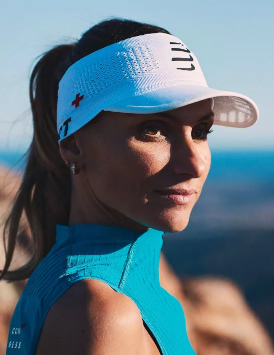 Diego Pazos porte généralement cette visière running Compressport décalée avec son traditionnel nœud papillon, pour un look unique et totalement "Diego" sur les sentiers des ultras. Développé sur demande explicite de notre champion, le Spiderweb Headband regroupe les propriétés thermorégulantes du Headband On/Off avec la protection solaire transparente de la visière Spiderweb. Le bandeau élastique en microfibre perforé offre un contrôle constant de la température au niveau de la tête pour un confort inégalé. La technologie on/off évacue rapidement la transpiration et permet au tissu de sécher jusqu'à 7 fois plus rapidement qu'un bandeau traditionnel afin que la tête reste au frais même dans des conditions très chaudes. La visière structurée transparente offre une protection solaire tout en vous permettant de garder un oeil sur le chemin sans lever la tête. Comme tout rebel qui se doit, Diego porte sa visière à l'envers, mais si vous êtes à la recherche d'un bandeau fashion avec visière solaire intégrée, alors la Spiderweb Headband est pour vous. Hauteur : 7,5cm