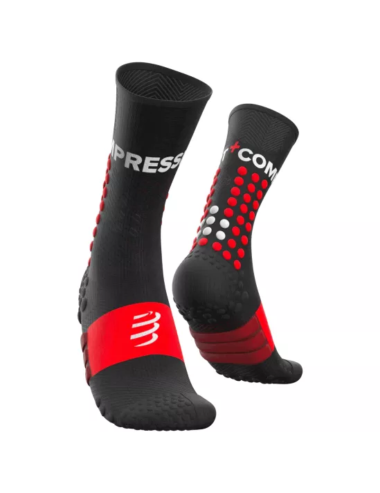 Jordi, Diego et Seb peuvent vous le confirmer, 160 bornes c'est long… et c'est encore plus long si vos pieds sont en lambeaux. Dessinées à la base pour affronter les caprices de l'UTMB, nous vous pardonnerons de porter les Ultra-Trail® Socks sur d'autres ultras à travers le monde. Sur la base du modèle trail standard, cette chaussette Ultra-Trail® est dotée d'un strap renforcé pour plus de stabilité et un meilleur soutien du tendon d'Achille. Les 3D.dots en surnombre viennent absorber un maximum de vibrations dans des terrains techniques et variés tout en protégeant des potentiels hématomes dûs à des pieds volants. La zone d'orteils est particulièrement renforcée et rembourrée pour préserver les orteils et ongles lors de descentes vertigineuses. Au milieu et à l'avant du pied, les dots combinés à un support de voûte plantaire empêchent le tissu de glisser, réduisant ainsi le risque d'échauffement et augmentant la stabilité et la proprioception. Une compression ciblée stimule la circulation sanguine et retarde la fatigue si vous courez toute la nuit. Faites comme les pros et domptez les terrains les plus sauvages avec notre Ultra-Trail® Sock, modèle noir élégance!